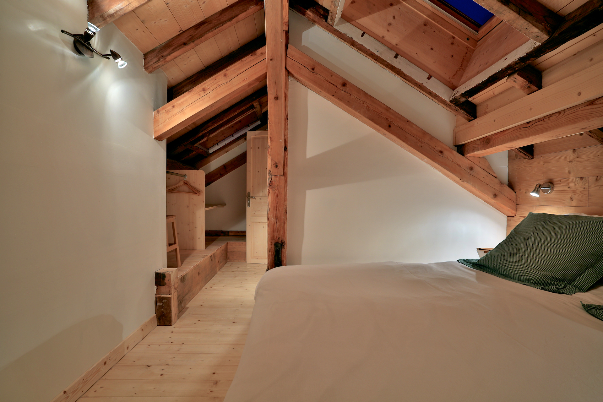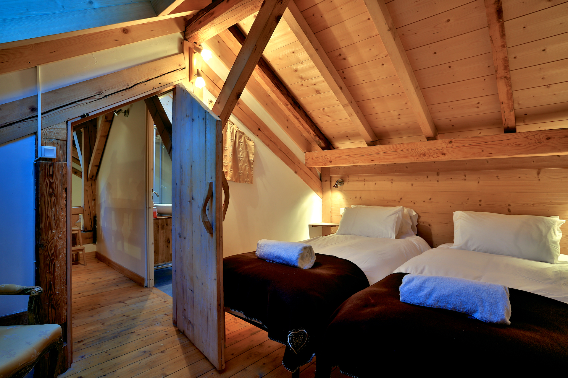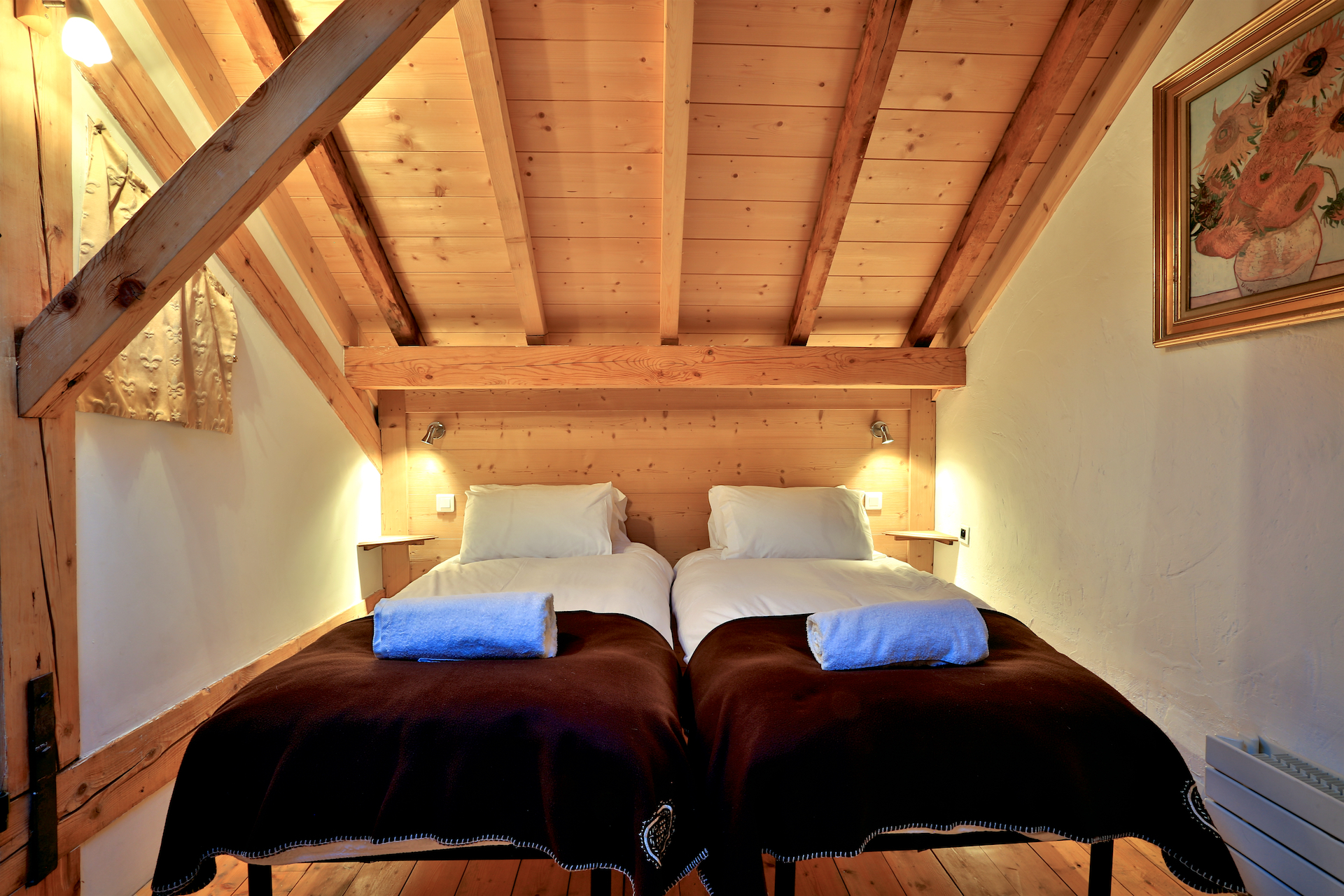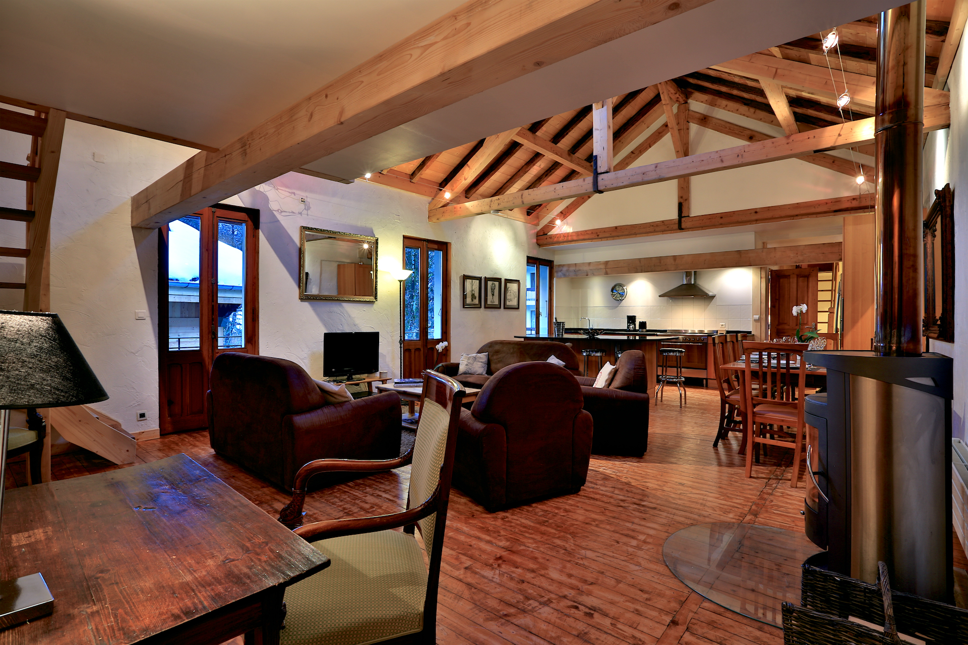 The stunning loft apartment occupies the whole top floor of the coach house. The apartment is a massive 160m2 with exposed beams and wood floors. There are a total of five full height doors opening up to reveal fabulous views of the Mont-Blanc. The loft is stylishly furnished and boasts all modern gadgets and up-to-date facilities that one would associate with a property of this quality. There is a flat screen TV, an iphone 6/ipad docking station, a DVD player, and free Wi-Fi internet connection. The kitchen is fully equipped with a 90cm range cooker and a large bar area. There is also a washing machine, dryer, dishwasher and microwave. There are 4 bedrooms, 2 doubles, 2 twins and 4 bathrooms (all ensuite). Infant travel cots and highchairs are available upon request. The apartment sleeps a maximum of 8 guests.