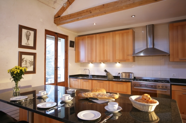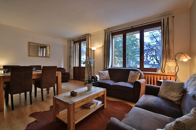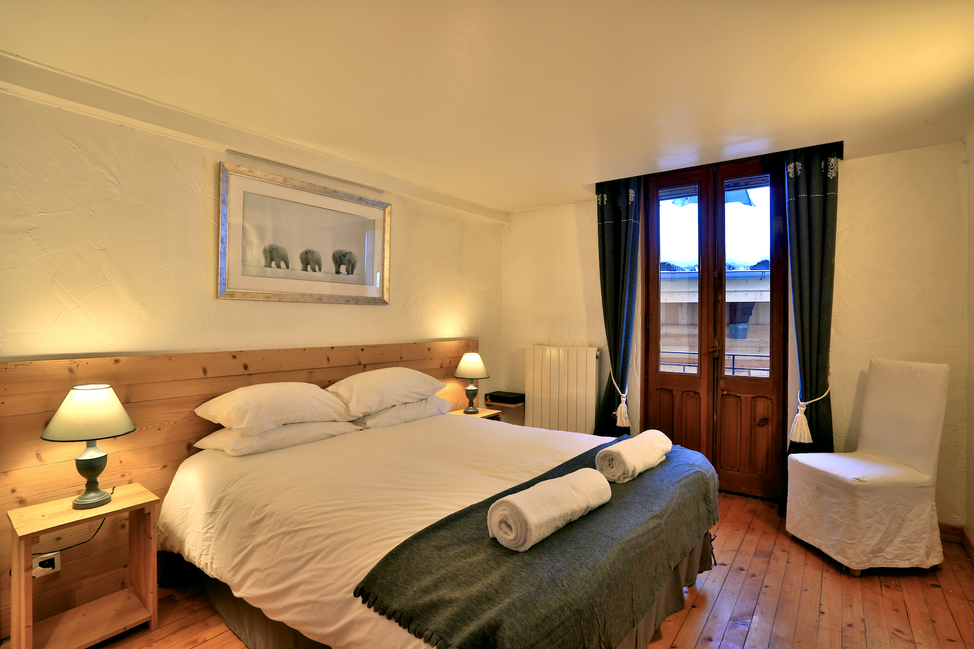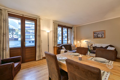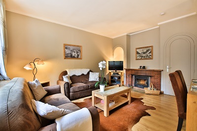 The Terrace is a large 140m2 4 bedroom apartment located on the raised ground floor of the coach-house. Stylishly furnished the apartment has all modern gadgets and up-to-date facilities that one would associate with a property of this quality including a log burning fireplace, flat screen TV, a DVD player and free Wi-Fi internet connection. The kitchen is fully equipped with a large fridge freezer and bar area. There is also a washing machine, a tumble dryer, a dishwasher and microwave. The open-planned living area gives onto a large private Terrace (hence the name). There are 4 bedrooms, two twins and two doubles and 3 bathrooms (plus a separate toilet). Two of the bedrooms are en suite. There is a ski locker room and private covered parking on the property. From the terrace there are fabulous views of the Mont-Blanc. Infant travel cots and highchairs are also available upon request. We would recommend up to a maximum of 8 guests.