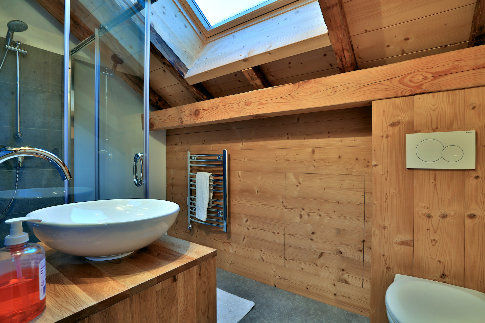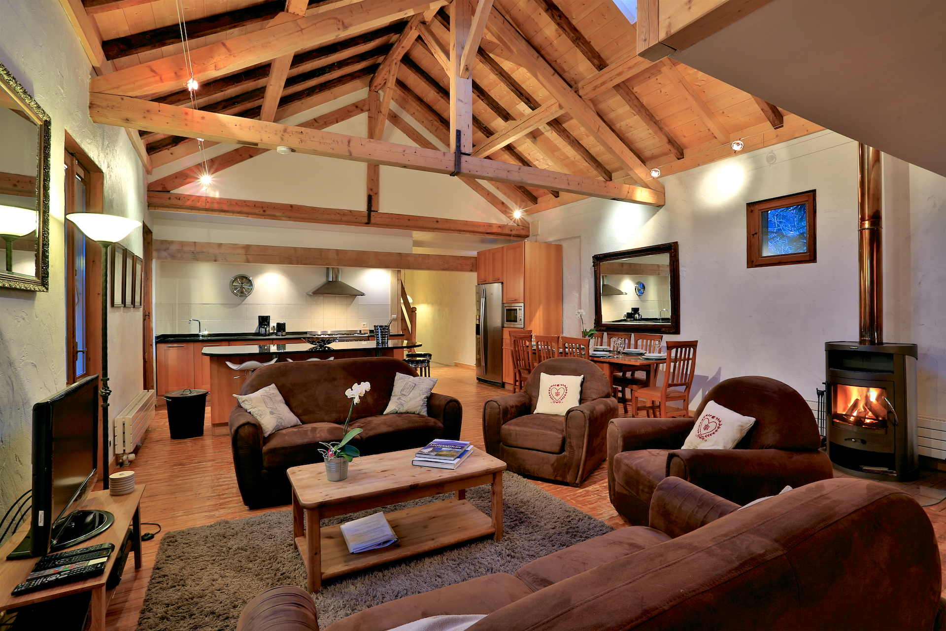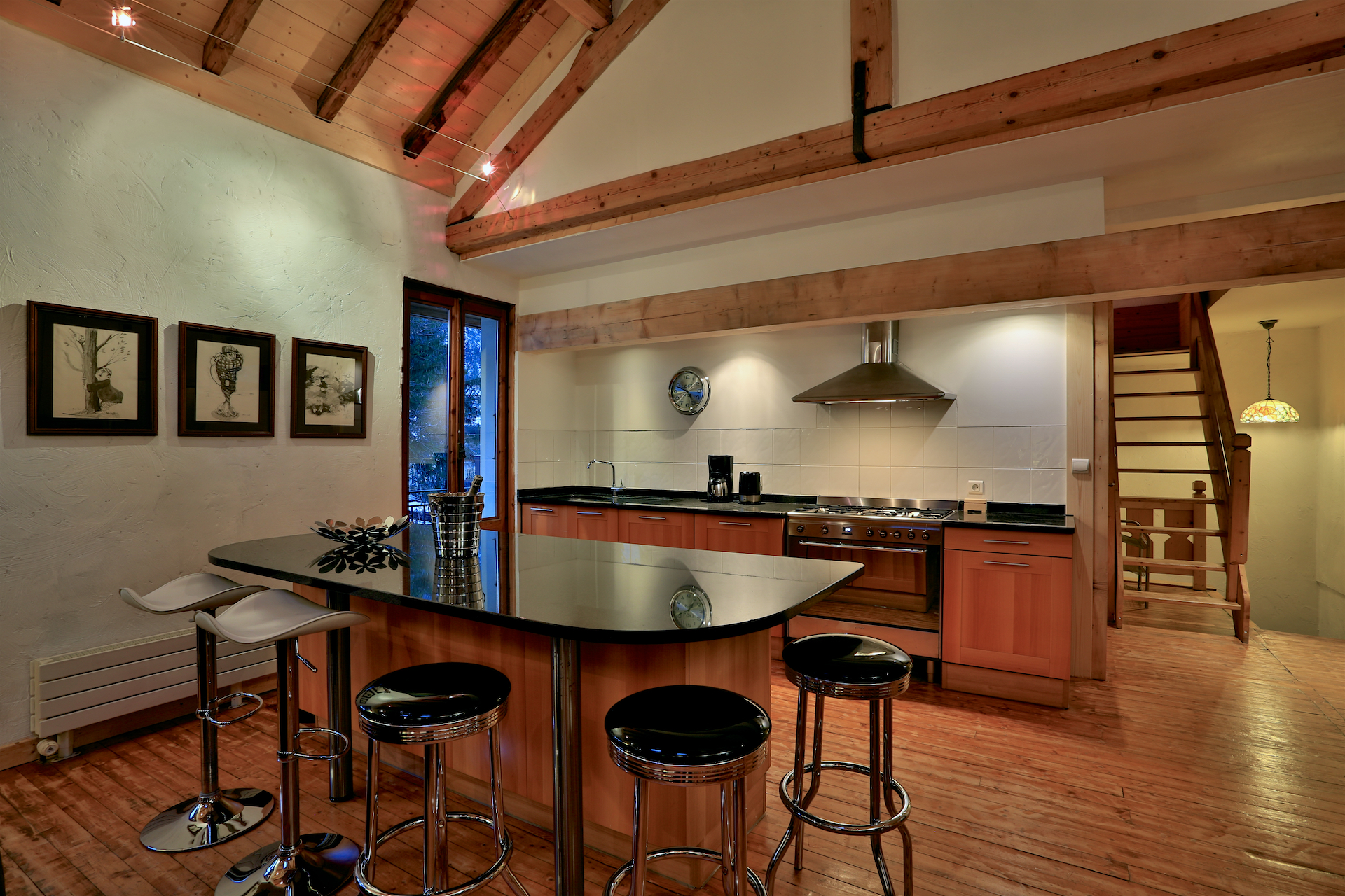 On the second floor, there is a large contemporary living space with a cosy log burner, exposed beams and wood floors. The kitchen is fully equipped with a large bar area. The large panoramic windows and balcony provided unparalleled views of the Mont Blanc. There is Wifi throughout the chalet.
