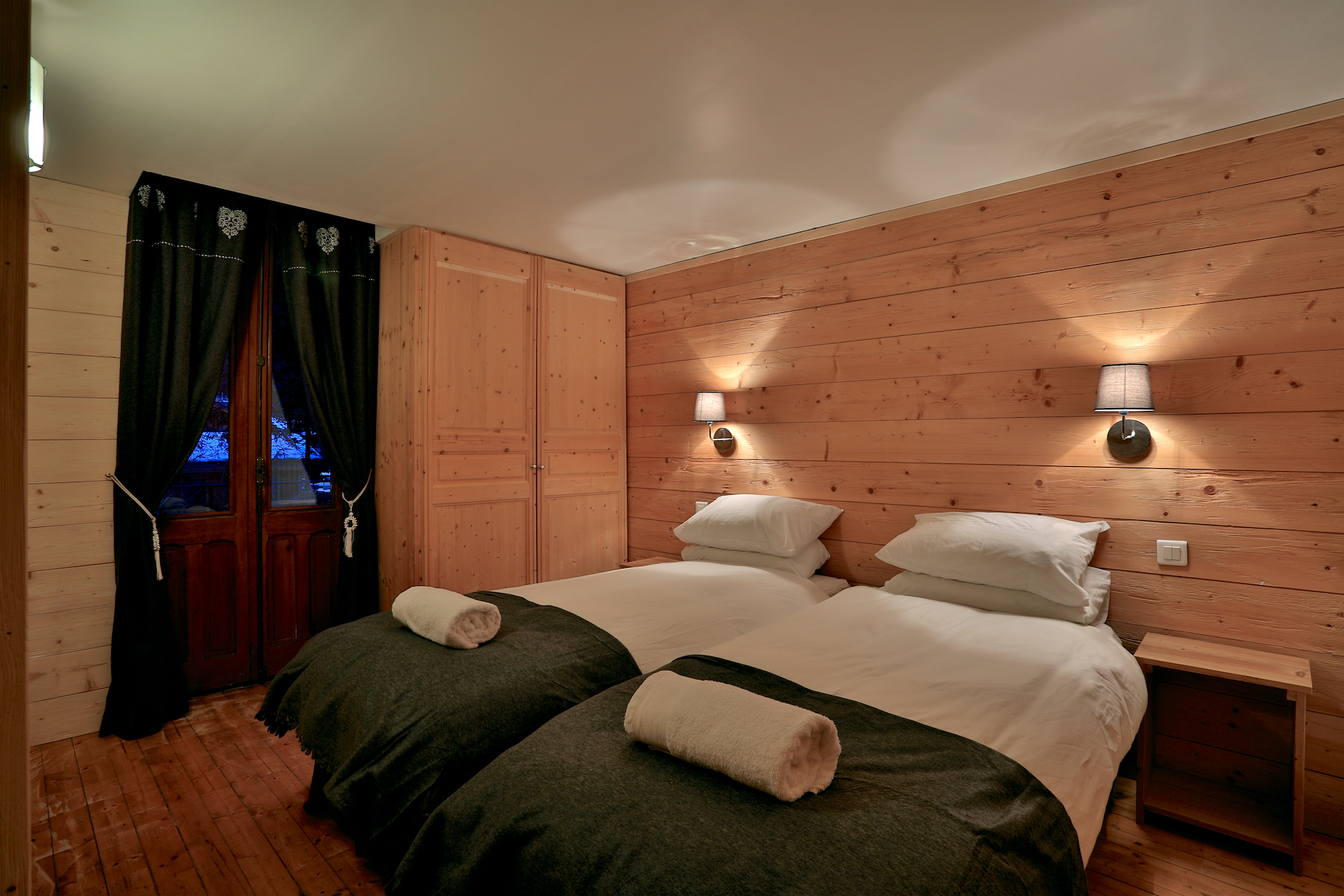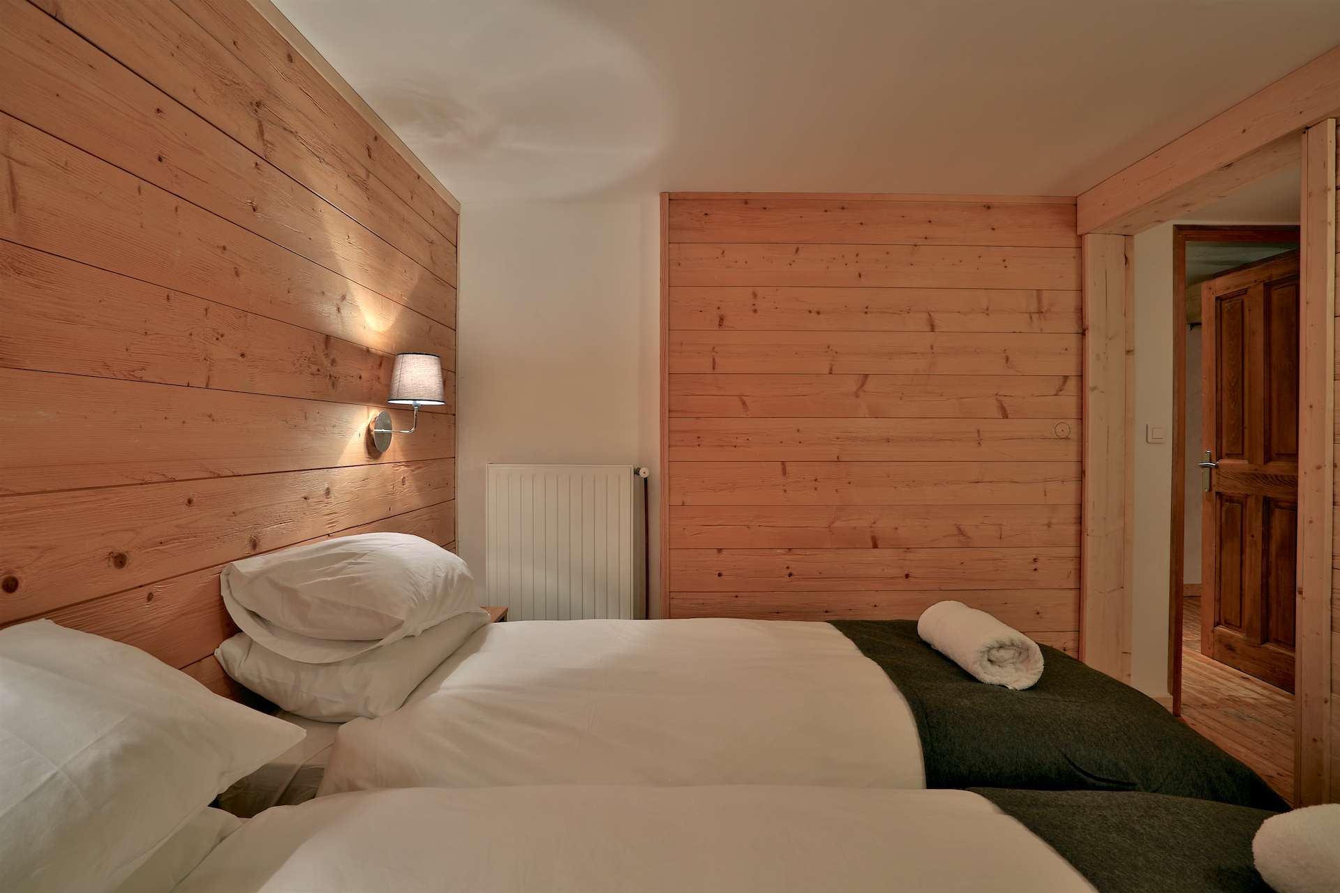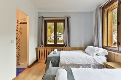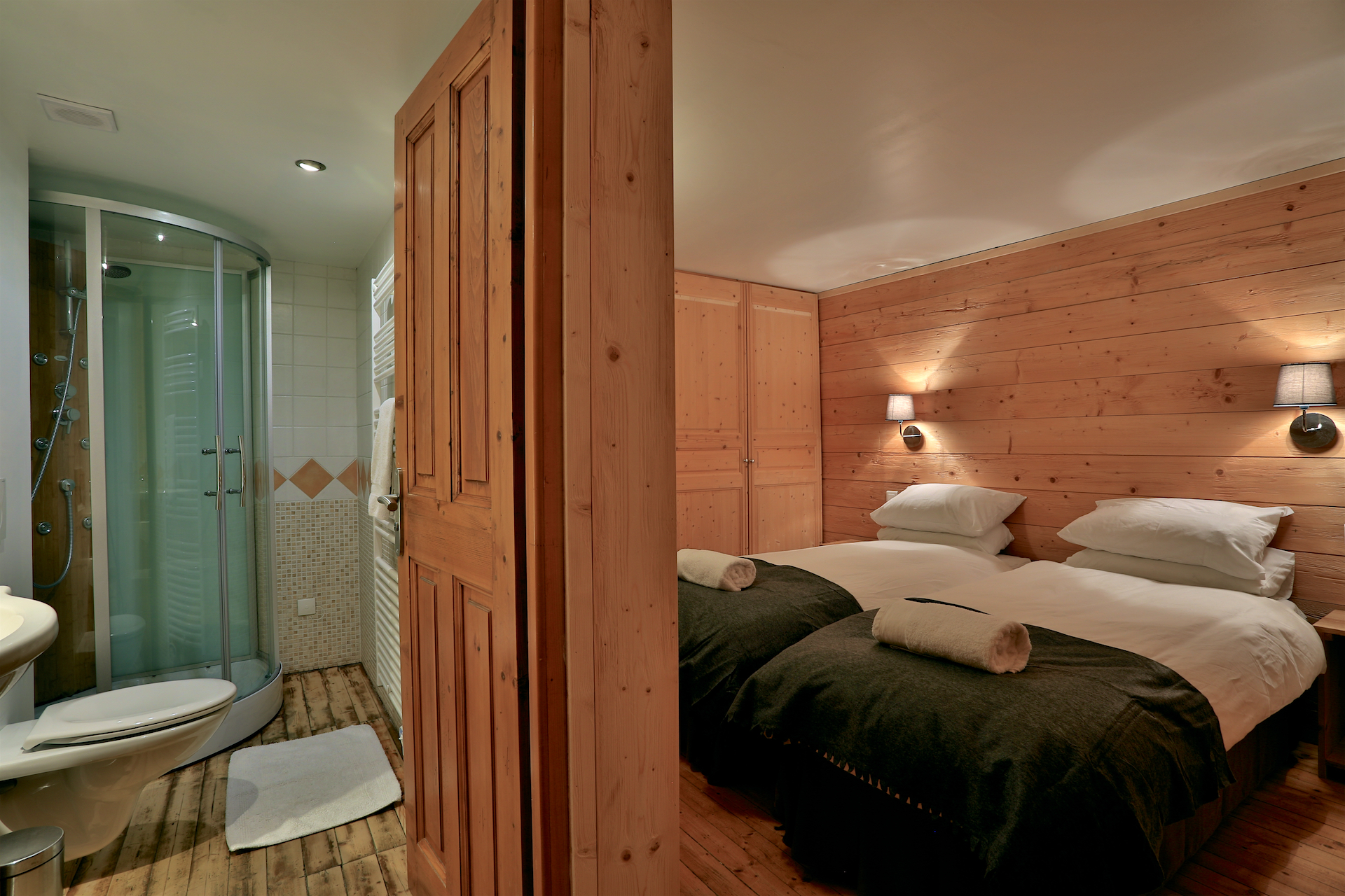 Sapin 3 is located on the second floor of the chalet and provides a very spacious 75m2 of living accommodation. Doors open onto a private balcony where guests have fantastic views of the Mont-Blanc.Tthe apartment has three bedrooms, two double bedrooms and one twin room. One bedroom has an ensuite shower room and there is a second separate bathroom. The kitchen has all modern appliances including washing machine, dishwasher and microwave. There is a flat screen TV, a stereo, a DVD player, and free Wi-Fi internet connection. Infant travel cots and highchairs are also available upon request. We would recommend up to a maximum of 6 guests.